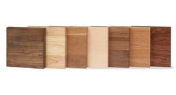 All samples are cut to the actual thickness of the desktop. With physical samples, you can compare not just the appearance but the heft and feel of the various desktop wood species.